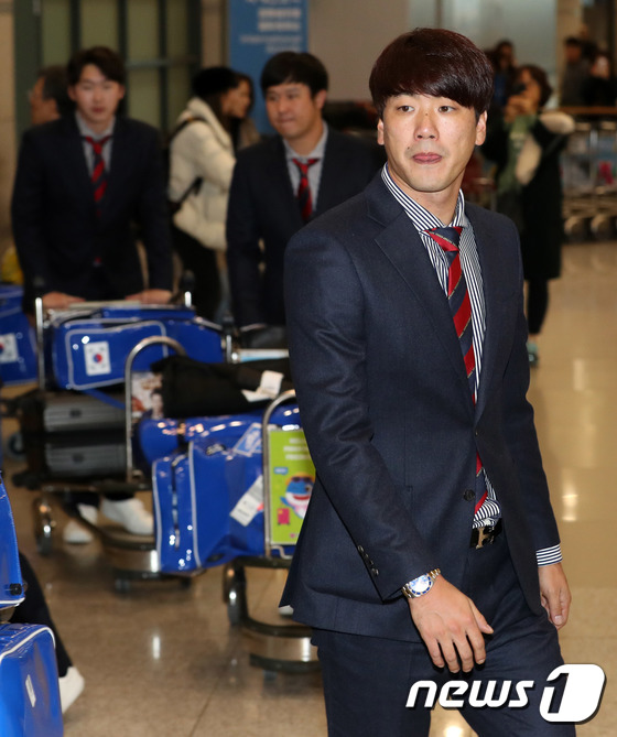 | 2019 세계야구소프트볼연맹(WBSC) 프리미어12에서 준우승을 차지한 한국야구대표팀 선수들이 18일 오후 인천공항 제1터미널을 통해 귀국, 김광현이 입국장을 나서고 있다. 2019.11.18/뉴스1 © News1 이동해 기자 |